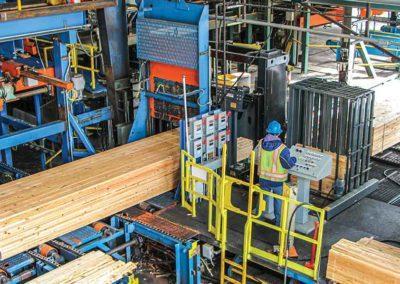 The largest of the projects included an all-electric Hogue Industries high speed dual fork stacker with secondary hoist system and Samuel strapping system. The project helped speed up the planer mill and added more precision and efficiency on the stacking-strapping end, contributing to a 25% overall increase in stacking capacity.
