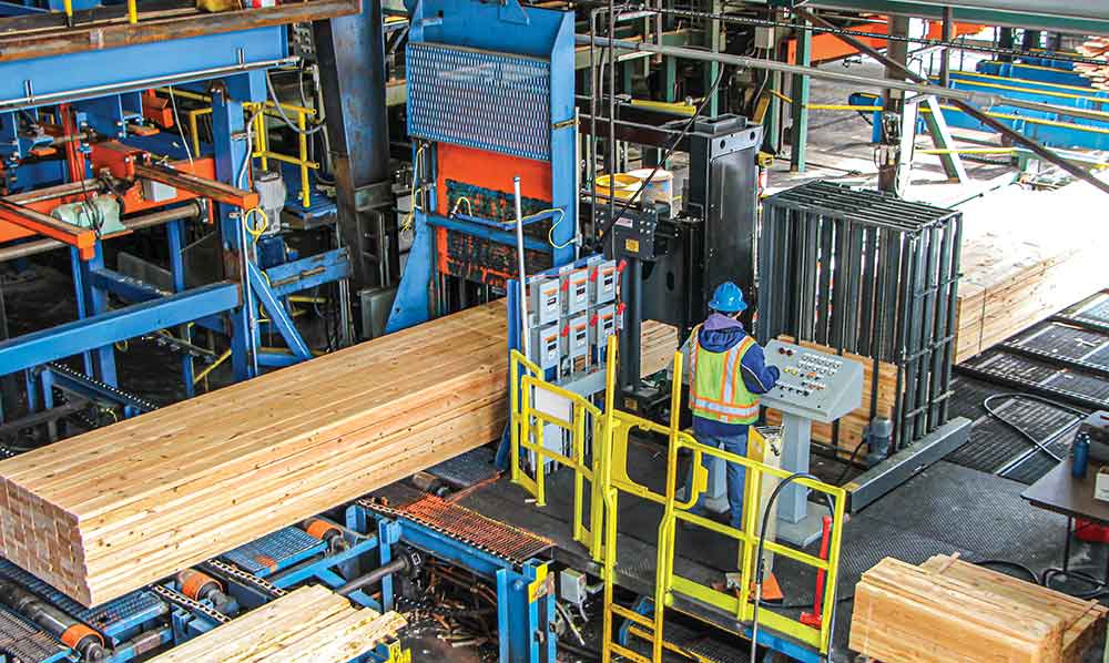 The mill’s finishing end had been bottleneck for the operation, says Mill Manager John Simington, adding that improvements in the area the past few years—grader, fence and new stacking-strapping line—have boosted overall efficiency.