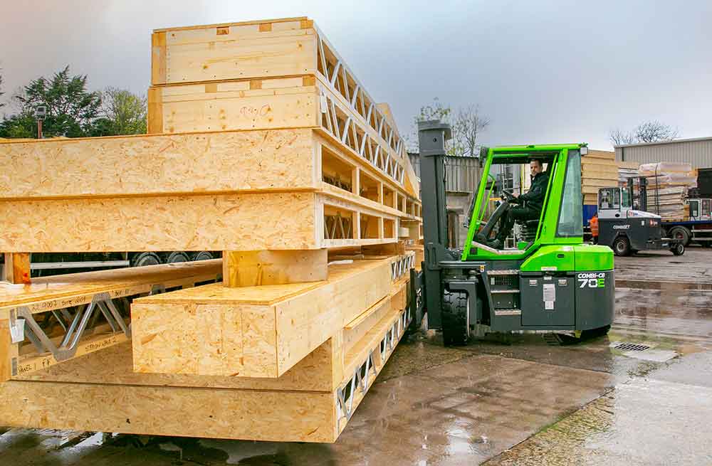 As leading forklift manufacturer Combilift continues its 25 years in business celebrations with the launch of another new model truck, this time at Ligna, the international timber and woodworking show, held in Hanover. The new Combi-CB70E is a further addition to Combilift’s ever growing range of electric models which offers powerful performance, extensive battery life and unrivalled ergonomics. This model, in the vibrant Combi-green livery first seen on the recently launched Combi-CUBE product, boasts the distinction of being the shortest 7 ton capacity counterbalance truck on the market whilst also benefitting from multidirectional ability, enabling the versatile space saving handling of both long and bulky loads.