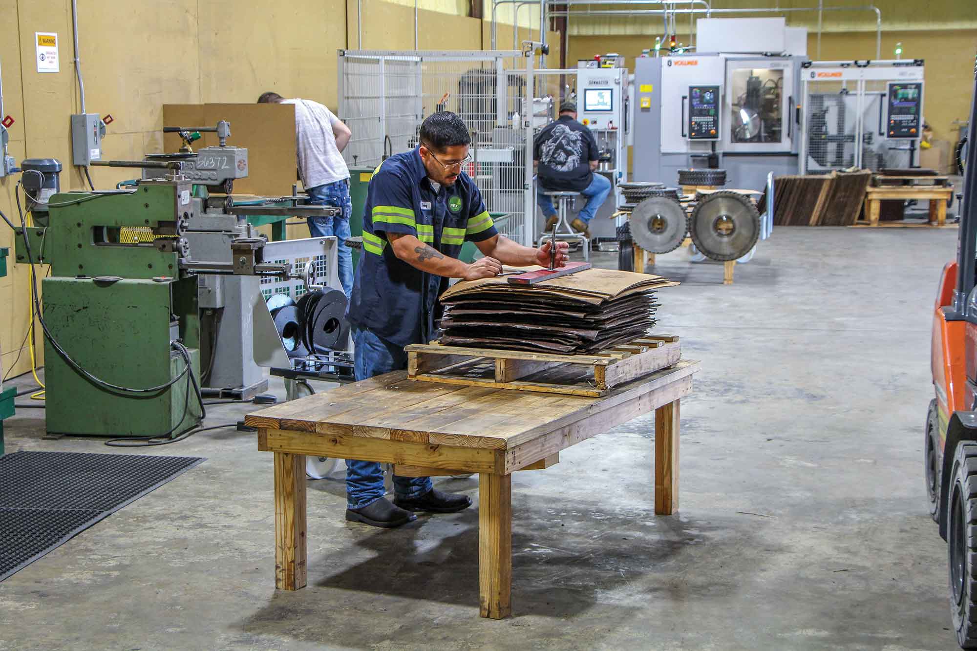 The central filing facility handles roughly 180-200 circle saws daily, from all three mills. In addition to the almost 1,000 saws reworked weekly, the facility will also produce 75-100 new saws per week as well.