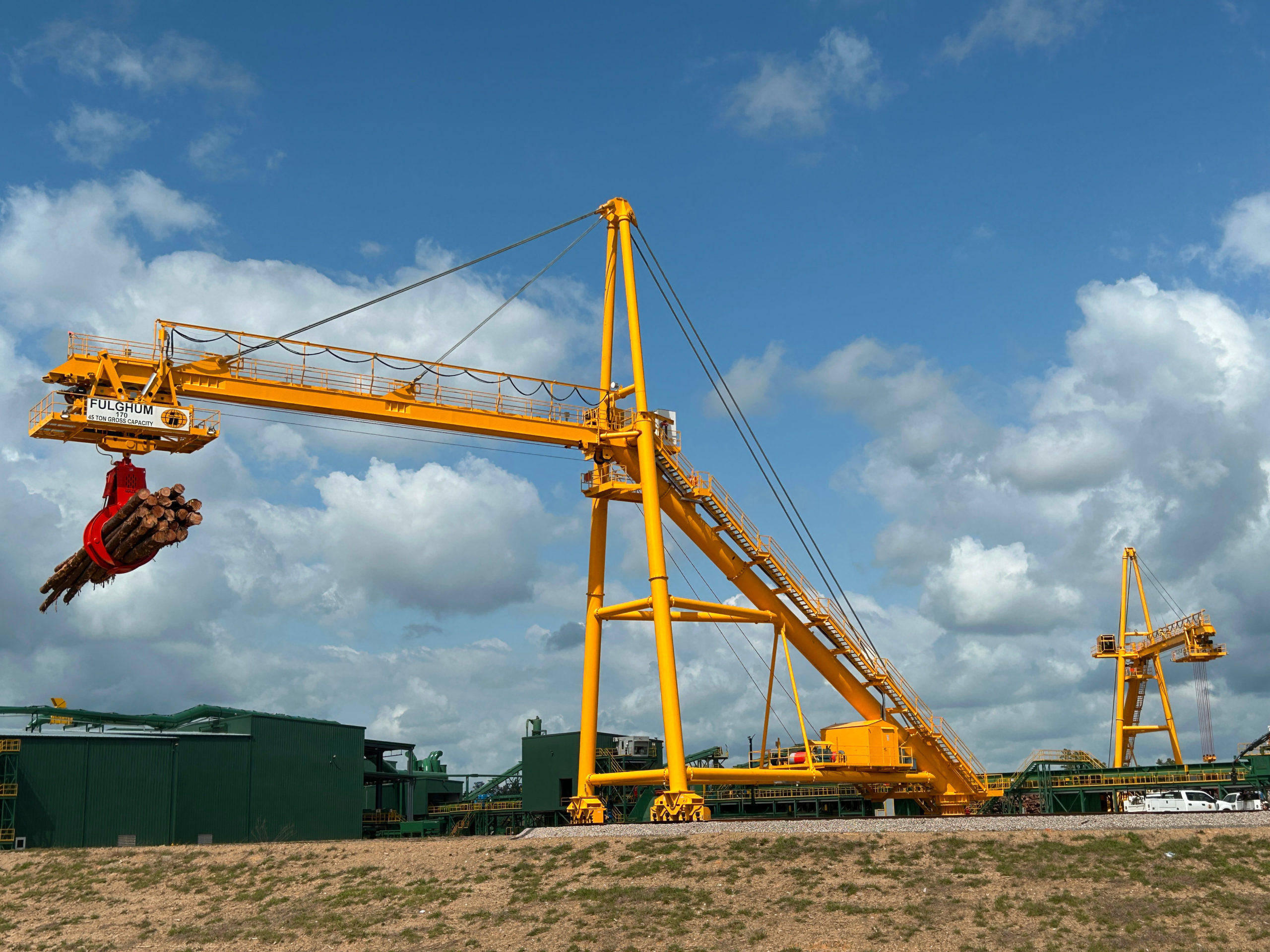 Fulghum Industries, Inc. has completed the commissioning of two newly installed 170 ft., 45-ton log cranes as part of a $210 million project with Comact for Canfor Southern Pine at Axis, Ala. Certification for the first crane was completed on October 25, 2024, with the second crane following suit and becoming operational on March 13, 2025. The new sawmill has an annual capacity of 250MMBF.