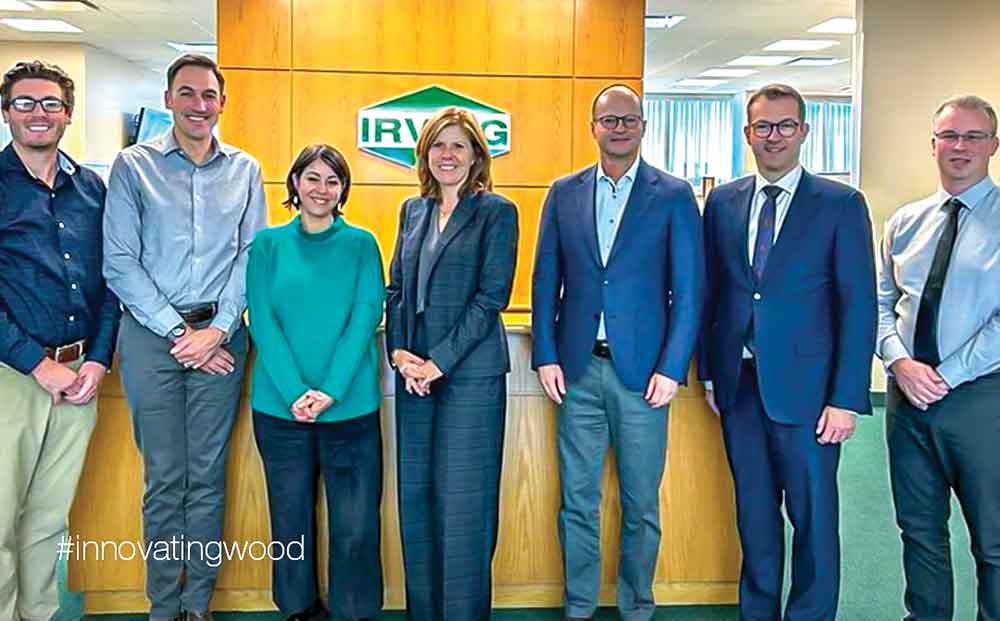 Left to right: Bob Bell, Sales Account Manager, MiCROTEC; Norvin Laudon, Director, MiCROTEC Vancouver; Arianna Giudiceandrea, CSO, MiCROTEC; Susan Coulombe, General Manager J.D Irving Ltd.; Frank Jöst, CEO MiCROTEC; Jerome Pelletier, Vice President, J.D. Irving Ltd.; Jody Gallant, Business Improvement Manager, J.D. Irving Ltd.
