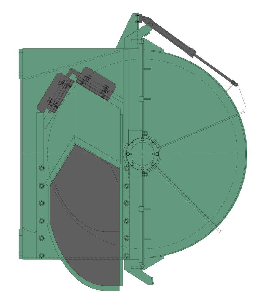 The Progress Industries “No-Slot” chipper is the newest addition to a growing line of wood utilization equipment. The “No-Slot” chipper is a combination of old principles and new ones. It is a new concept, which incorporates years of research and engineering experience. The disc used in the “No-Slot” is only 76 in. in diameter, but it will chip log sizes greater than a standard 104 in. disc chipper as used in the industry today.